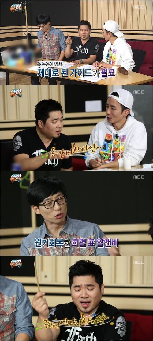 한편 이날 ‘무한도전’은 다음 달 2일 방송되는 2013 자유로 가요제 실황 공개를 앞두고 녹음과 마지막 연습 현장이 펼쳐졌다. 이번 가요제는 하우두유둘(유재석, 유희열), 거머리(박명수, 프라이머리), 병살(정준하, 김C), G.A.B(길, 보아), 형용돈죵(정형돈, 지드래곤), 장미하관(노홍철, 장미여관), 세븐티 핑거스(하하, 장기하와 얼굴들)가 참여했다.