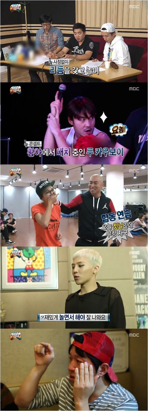 ‘무한도전’ 판 ‘우리 결혼했어요’ 커플인 정형돈과 지드래곤의 연습 과정은 달달했다가 코믹했다가 시청자들을 들었다놨다 했다. 지드래곤은 정형돈의 맛깔스러운 랩에 칭찬하며 애정을 드러내 정형돈을 기분 좋게 만들었다. 여기에 ‘힙합 비둘기’ 데프콘까지 가세하며 음악은 진지하지만, 음악을 만드는 과정은 즐거움이 넘치는 ‘형용돈죵’의 매력을 폭발했다.