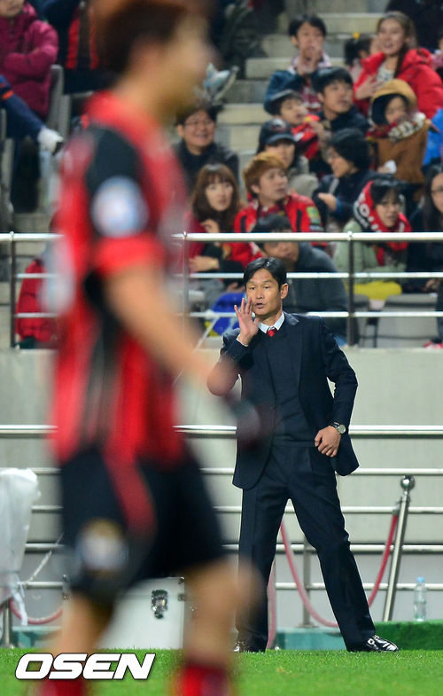 26일 서울월드컵경기장에서 열린 2013 아시아축구연맹(AFC) 챔피언스리그 결승 1차전 FC 서울과 광저우 에버그란데FC의 경기, 후반 서울 최용수 감독이 지시를 내리고 있다.