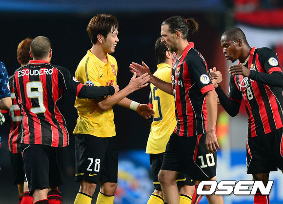 경기 종료 후 광저우 김영권이 서울 데얀과 인사를 나누고 있다./sunday@osen.co.kr