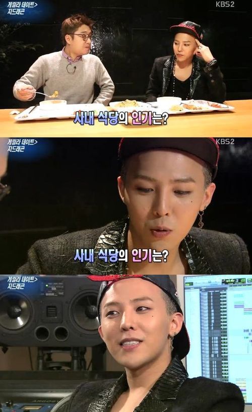 지드래곤은 26일 오후 방송된 KBS 2TV '연예가중계'에서 최근 유명세를 타고 있는 YG 사내식당을 소개했다.