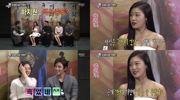 하지원은 27일 오후 방송된 MBC '섹션 TV 연예통신'에서 "'기황후'에 액션이 없다고 해서 출연했는데 액션이 정말 많더라"고 밝혔다.