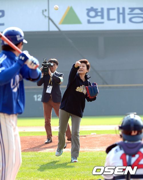 박근혜 대통령,'아리랑볼 시구 들어가요'