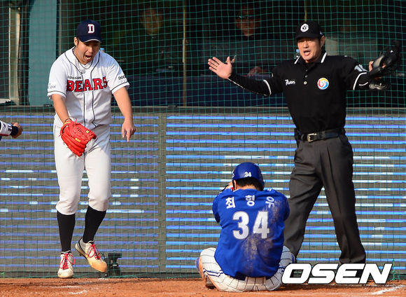 유희관,'아웃 아니에요?'
