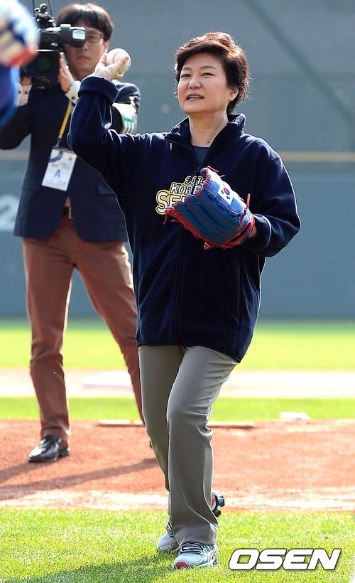 태극 글러브 끼고 시구하는 박근혜 대통령