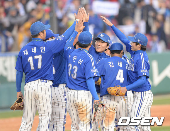 경기 종료후 삼성 선수들이 승리의 기쁨을 나누고 있다./ ajyoung@osen.co.kr