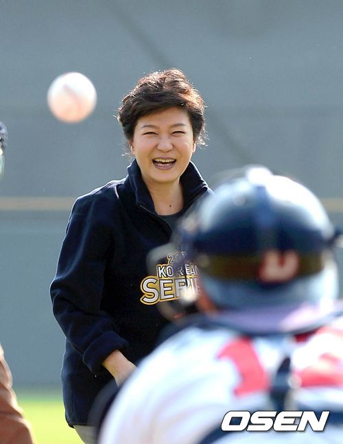 경기 전 박근혜 대통령이 시구를 하고 있다./spjj@osen.co.kr