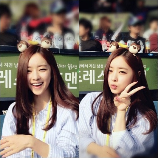 배우 홍수아의 야구장 사진이 눈길을 끈다.