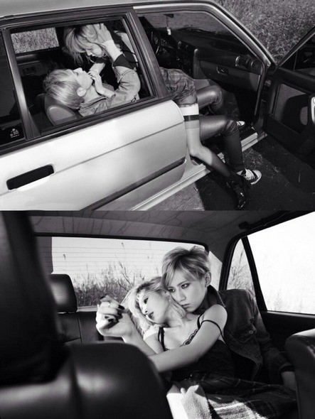 사진은 뮤직비디오에 등장하는 차량 장면으로 현아와 현승은 차 안에서 농도 짙은 스킨십을 나누며 애정신을 선보인 바 있다.
