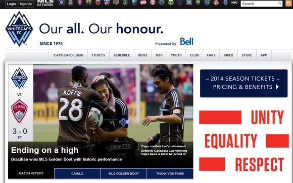 캐나다 밴쿠버 화이트캡스 FC 홈페이지 캡쳐
