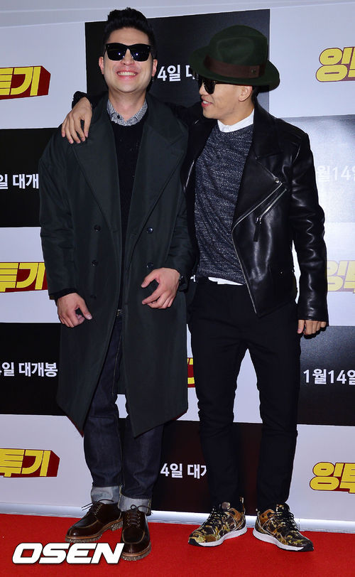 28일 오후 서울 용산 CGV에서 진행된 영화 '잉투기'(엄태화 감독) VIP시사회에서 다이나믹듀오가 포토월에서 포즈를 취하고 있다.