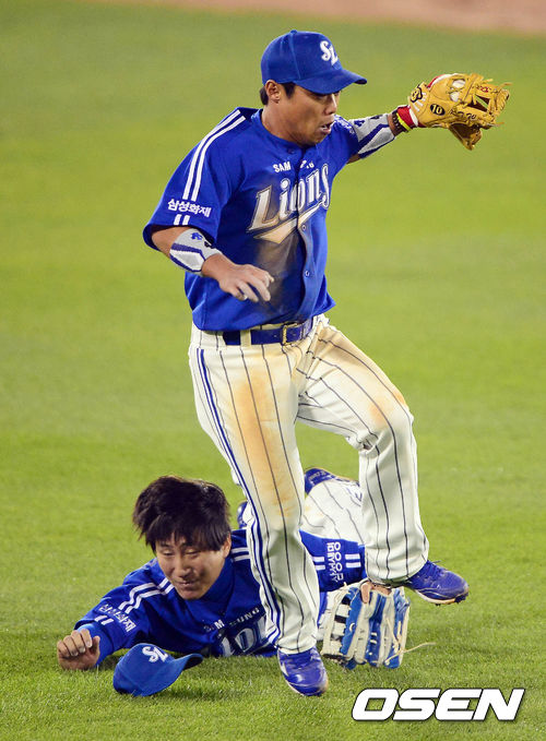 김태완-배영섭,'아찔한 충돌 간신히 모면'