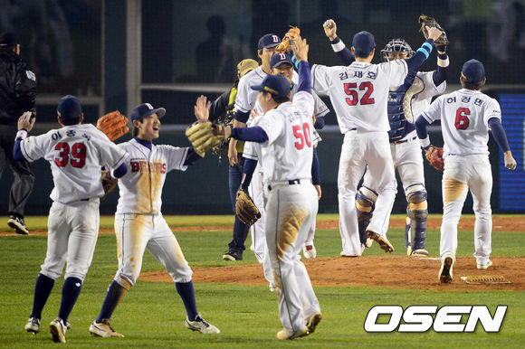 두산은 28일 잠실구장에서 열린 ‘2013한국야쿠르트 세븐 프로야구’ 삼성과 한국시리즈 4차전서 2-1로 승리를 거두며, 시리즈 전적 3승 1패를 만들었다. 이로써 두산은 남은 1승만 더하면 한국프로야구통산 최초의 4위 우승팀이 된다. / baik@osen.co.kr