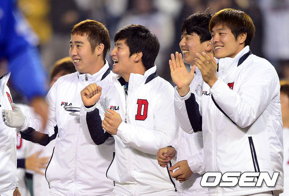 승리를 거둔 두산 선수들이 기뻐하고 있다./youngrae@osen.co.kr