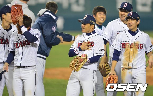 경기 종료 직후 두산 선수들이 환호하고 있다./dreamer@osen.co.kr