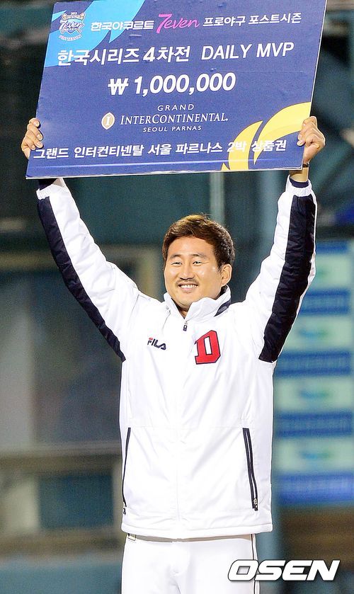 한국시리즈 4차전 MVP로 선정된 이재우가 포즈를 취하고 있다./dreamer@osen.co.kr