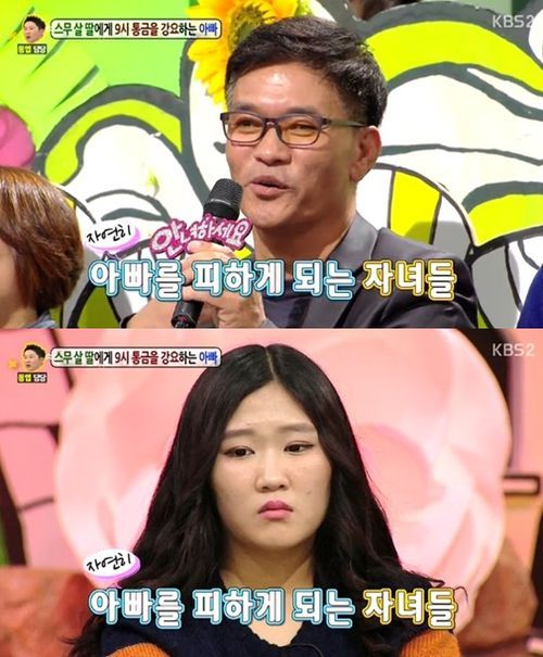 28일 방송된 KBS 2TV 예능프로그램 '대국민 토크쇼 안녕하세요'(이하 '안녕하세요')에는 스무 살 딸에게 9시 통금을 강요하는 아빠가 고민인 딸이 등장했다.