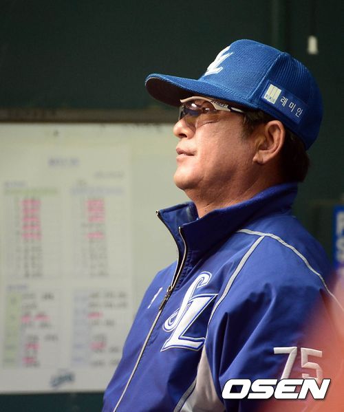 29일 오후 서울 잠실구장에서 열리는 '2013 한국야쿠르트 세븐 프로야구' 한국시리즈 5차전 두산 베어스와 삼성 라이온즈의 경기, 1회초에 3점을 먼저 내자 류중일 감독이 편안한 모습으로 경기를 지켜보고 있다.