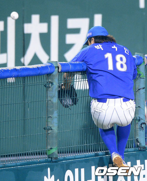 29일 오후 서울 잠실구장에서 열린 '2013 한국야쿠르트 세븐 프로야구' 한국시리즈 5차전 두산 베어스와 삼성 라이온즈의 경기, 3회말 1사 1,2루 두산 오재일의 파울타구를 삼성 박석민이 팔을 뻗어 포구 시도하고 있다. 이후 오재일은 동점 적시타를 날렸다.
