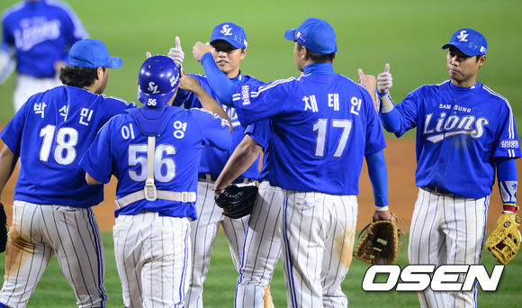 경기 종료 직후 삼성 선수들이 승리의 기쁨을 나누고 있다. /jpnews@osen.co.kr
