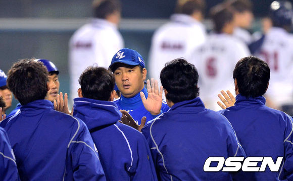 승리를 거둔 삼성 채태인이 동료들과 하이파이브를 하고 있다./rumi@osen.co.kr