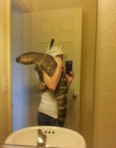 최근 한 온라인 커뮤니티에서 애완동물 사진이 관심을 모으고 있다. '섬뜩한 애완동물'이라는 제목의 게시물에 도마뱀처럼 생긴 동물의 사진이 포함돼 있다. 하지만 크기가 어마어마하다. 성인 남성 한 명과 같은 크기에 보는 이들을 경악케 하고 있다.