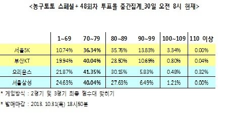 2013 KBL 2경기 대상 농구토토 스페셜+ 48회차 투표율 중간집계 결과