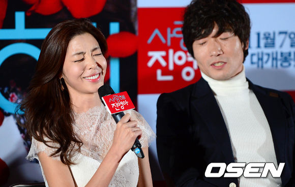 배우 김규리가 질문을 잊어버린 박원상에 장난스런 표정을 짓고 있다.