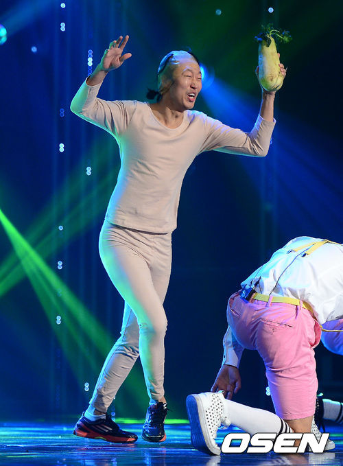 30일 오후 서울 마포구 상암동 누리꿈 스퀘어에서 진행된 MBC MUSIC '쇼 챔피언'에서 퓨어 무대에 개그맨 김경진이 무대에 올라 개그를 선보이고 있다.