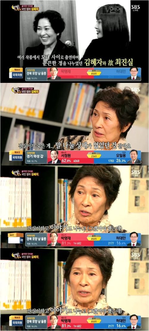 김혜자는 “내가 소극적인 사람이어서 (대화를 못한 게) 마음이 아팠다”고 덧붙였다.
