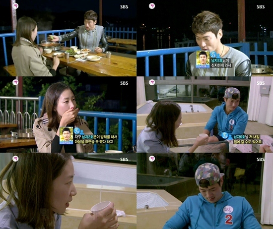 30일 오후 방송된 SBS '짝'에서는 남자2호와 여자1호가 랜덤데이트를 즐기는 모습이 그려졌다. 두 사람은 함께 식사를 하며 서로에 대해 좀 더 알아가는 시간을 가졌다.