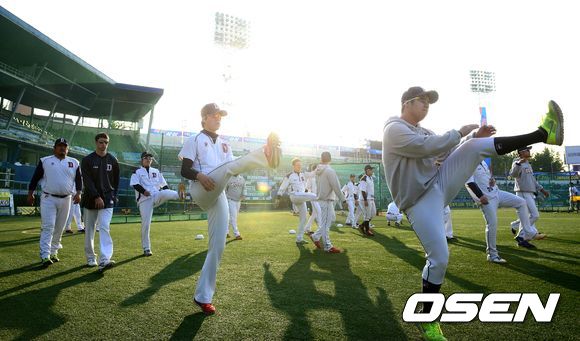 31일 오후 대구구장에서 열리는 '2013 한국야쿠르트 세븐 프로야구' 한국시리즈 6차전 삼성 라이온즈와 두산 베어스의 경기, 두산 선수들이 내야에서 몸을 풀고 있다.