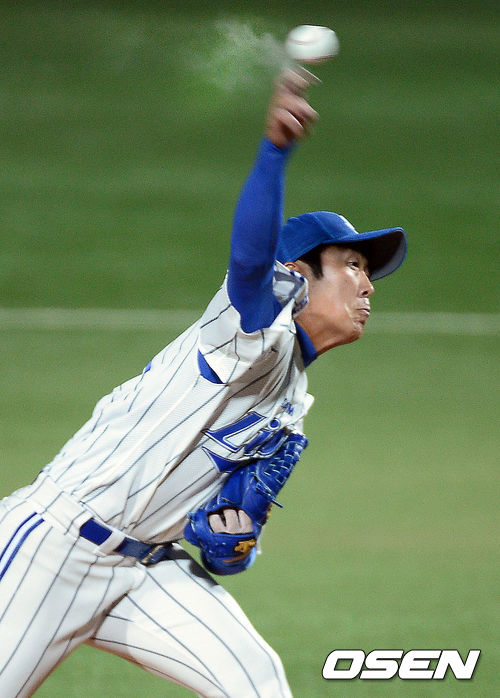 31일 오후 대구구장에서 열리는 '2013 한국야쿠르트 세븐 프로야구' 한국시리즈 6차전 삼성 라이온즈와 두산 베어스의 경기, 2회초 삼성 배영수가 밴덴헐크에 이어 마운드에 올라 역투하고 있다.