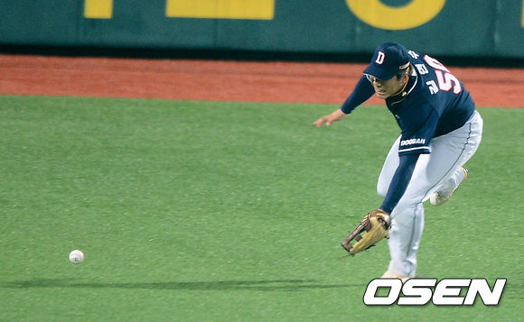 31일 오후 대구구장에서 열린 '2013 한국야쿠르트 세븐 프로야구' 한국시리즈 삼성 라이온즈와 두산 베어스의 6차전, 3회말 무사에서 두산 김현수가 삼성 진갑용의 타구를 놓치며 발에 맞고 굴절되고 있다.