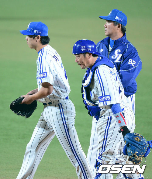 31일 오후 대구구장에서 열린 '2013 한국야쿠르트 세븐 프로야구' 한국시리즈 삼성 라이온즈와 두산 베어스의 6차전, 5회초 2사 2루에서 삼성 차우찬이 마운드를 내려오고 있다.