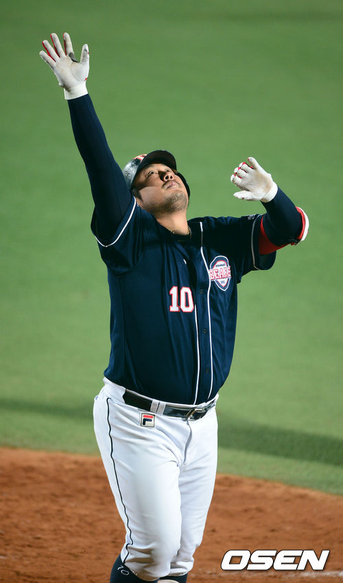 31일 오후 대구구장에서 열리는 '2013 한국야쿠르트 세븐 프로야구' 한국시리즈 6차전 삼성 라이온즈와 두산 베어스의 경기 5회초 두산 선두타자 최준석이 솔로홈런을 세레모니를 펼치고 있다.
