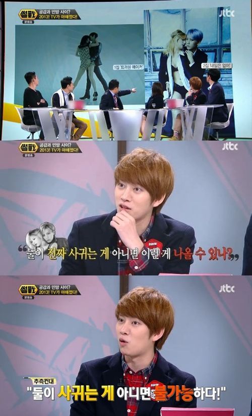 이에 김구라는 “둘이 안 사귀니까 저러는 거다. 정말 사귄다면 장현승이 여자친구가 19금 장면을 찍는 것을 반대했을 거다”고 김희철의 의견을 반대했다.