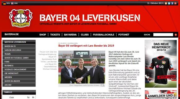 레버쿠젠 공식 홈페이지.