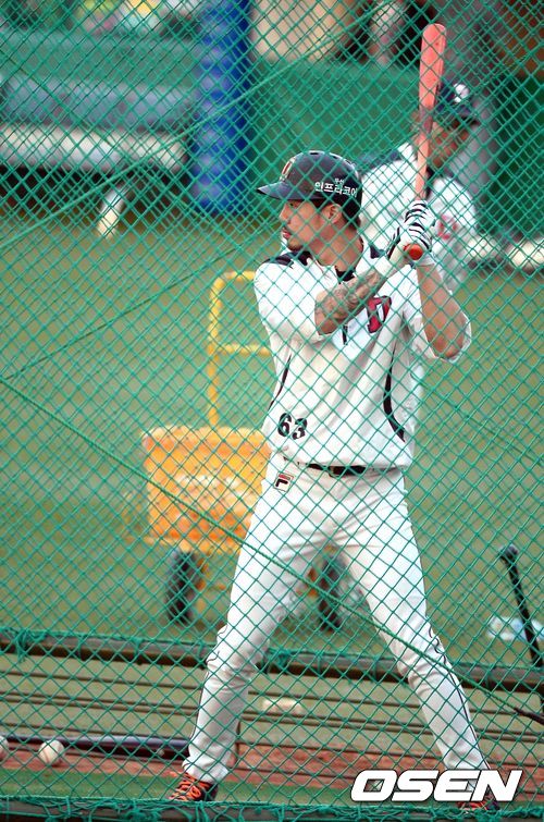 1일 오후 대구구장에서 열리는 '2013 한국야쿠르트 세븐 프로야구' 한국시리즈 7차전 삼성 라이온즈와 두산 베어스의 경기, 경기에 앞서 햄스트링 부상중인 오재원이 타격훈련을 하고 있다.