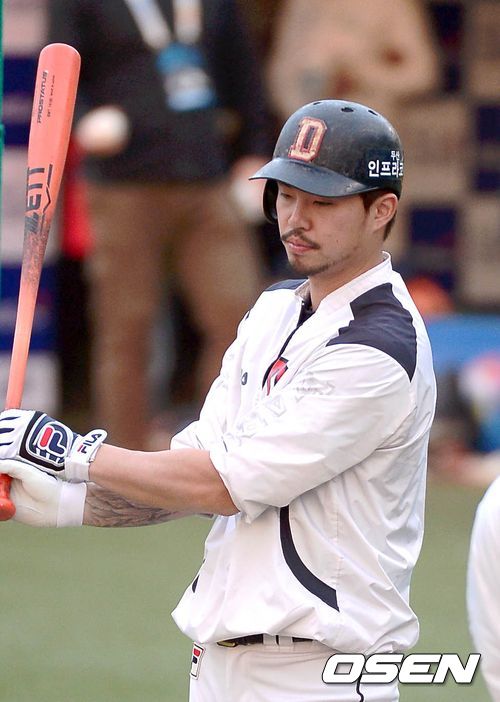 1일 오후 대구구장에서 열리는 '2013 한국야쿠르트 세븐 프로야구' 한국시리즈 7차전 삼성 라이온즈와 두산 베어스의 경기, 경기에 앞서 햄스트링 부상중인 오재원이 타격훈련을 하고 있다.