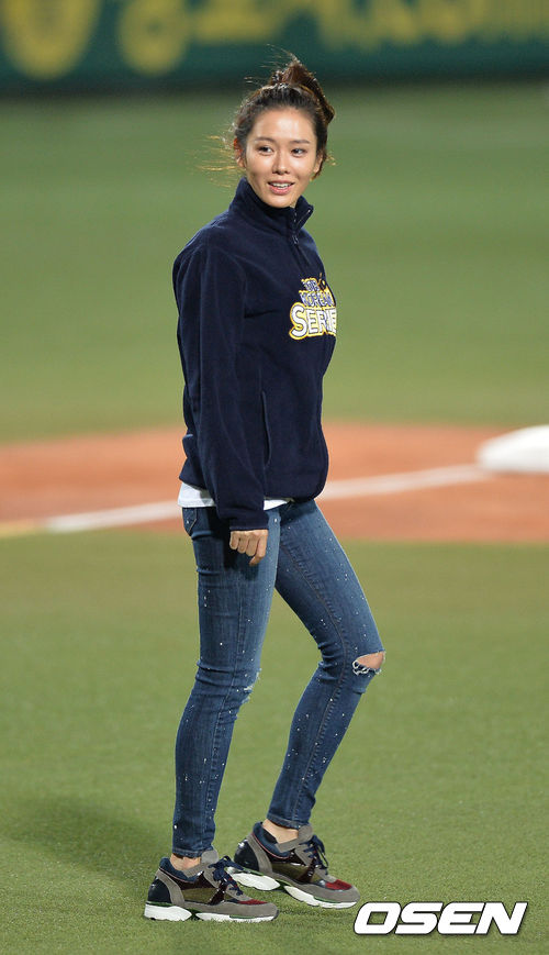 1일 오후 대구구장에서 열리는 '2013 한국야쿠르트 세븐 프로야구' 한국시리즈 7차전 삼성 라이온즈와 두산 베어스의 경기에 앞서 영화배우 손예진이 승리기원 시구를 하기위해 마운드에 오르고 있다.