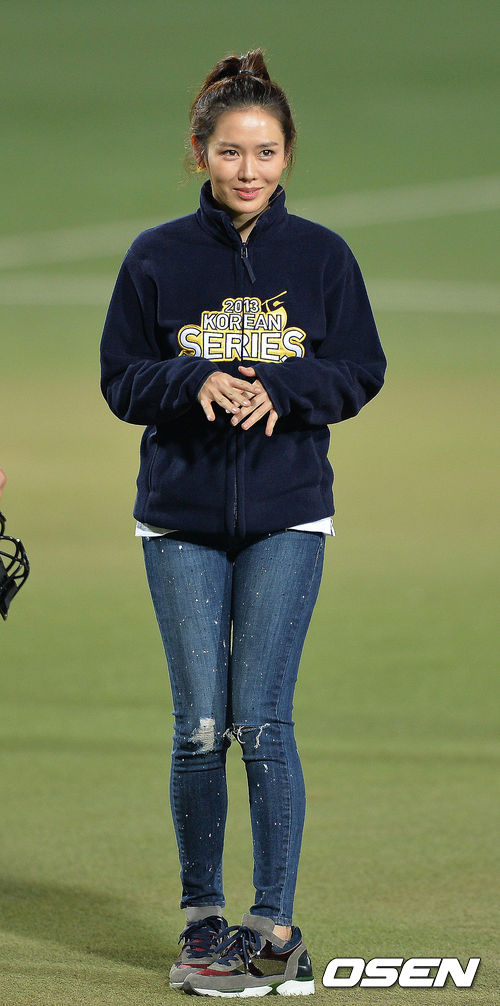 1일 오후 대구구장에서 열리는 '2013 한국야쿠르트 세븐 프로야구' 한국시리즈 7차전 삼성 라이온즈와 두산 베어스의 경기에 앞서 영화배우 손예진이 승리기원 시구를 하고 있다.