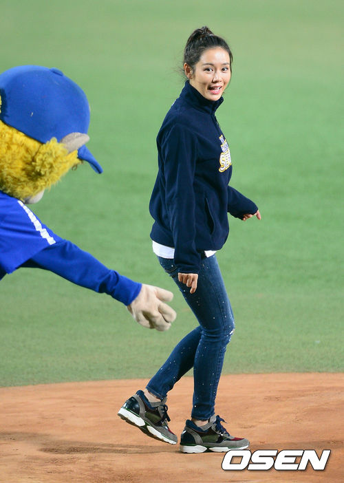 1일 오후 대구구장에서 열린 '2013 한국야쿠르트 세븐 프로야구' 한국시리즈 7차전 삼성 라이온즈와 두산 베어스의 경기에 앞서 배우 손예진이 시구를 위해 입장하고 있다