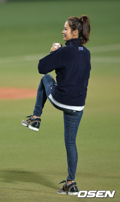 1일 오후 대구구장에서 열리는 '2013 한국야쿠르트 세븐 프로야구' 한국시리즈 7차전 삼성 라이온즈와 두산 베어스의 경기에 앞서 영화배우 손예진이 승리기원 시구를 하고 있다.