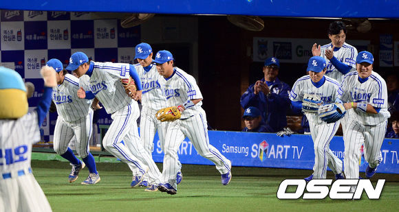 1일 오후 대구구장에서 열린 '2013 한국야쿠르트 세븐 프로야구' 한국시리즈 7차전 삼성 라이온즈와 두산 베어스의 경기 시작전 삼성 선수들이 수비 위치로 이동하고 있다.