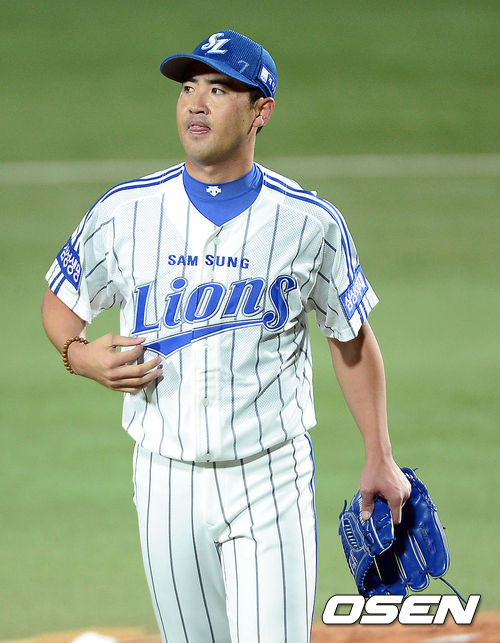 1일 오후 대구구장에서 열리는 '2013 한국야쿠르트 세븐 프로야구' 한국시리즈 7차전 삼성 라이온즈와 두산 베어스의 경기, 1회초 삼성 장원삼이 이닝을 마무리를 짓고 더그아웃으로 들어가고 있다.