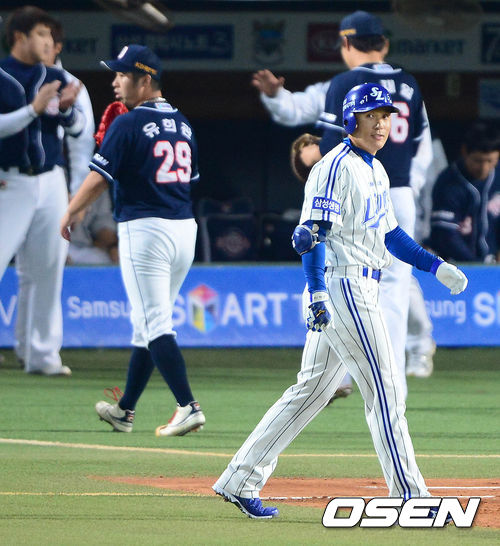 1일 오후 대구구장에서 열린 '2013 한국야쿠르트 세븐 프로야구' 한국시리즈 7차전 삼성 라이온즈와 두산 베어스의 경기 1회말 2사 1,2루 이승엽이 내야땅볼로 아웃 당한 후 덕아웃으로 향하고 있다.