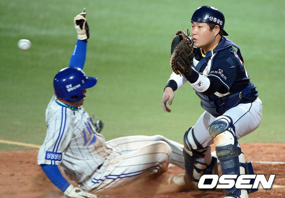 1일 오후 대구구장에서 열리는 '2013 한국야쿠르트 세븐 프로야구' 한국시리즈 7차전 삼성 라이온즈와 두산 베어스의 경기, 1회말 1사 만루 삼성 박한이가 박석민의 좌익수 희생플라이때 홈으로 쇄도하고 있다.