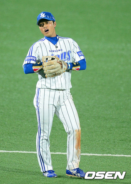 1일 오후 대구구장에서 열린 '2013 한국야쿠르트 세븐 프로야구' 한국시리즈 7차전 삼성 라이온즈와 두산 베어스의 경기, 3회초 1사 1,2루에서 삼성 정병곤이 두산 최준석의 유격수 땅볼 타구를 놓치며 아쉬워하고 있다.