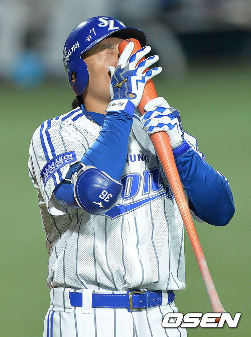 1일 오후 대구구장에서 열리는 '2013 한국야쿠르트 세븐 프로야구' 한국시리즈 7차전 삼성 라이온즈와 두산 베어스의 경기, 3회말 2사 1,2루 이승엽 파울타구를 날리며 아쉬워하고 있다.